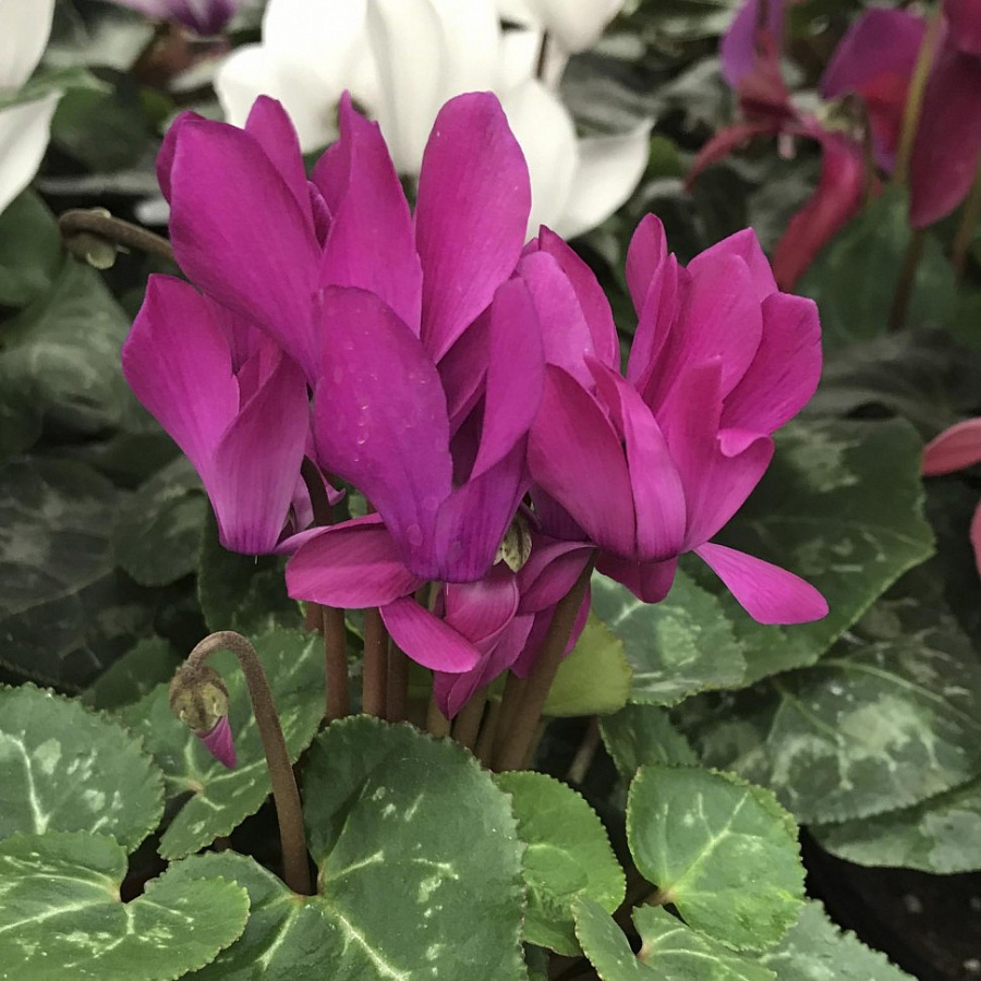 Цикламен персидский концерто роуз - это изысканное растение с нежными розовыми цветками, которые привлекают внимание своей красотой. Его листья зеленые с белыми разводами, создавая уникальный и яркий вид. Растение достигает высоты до 25 см, идеально подходит для групповых и одиночных посадок.