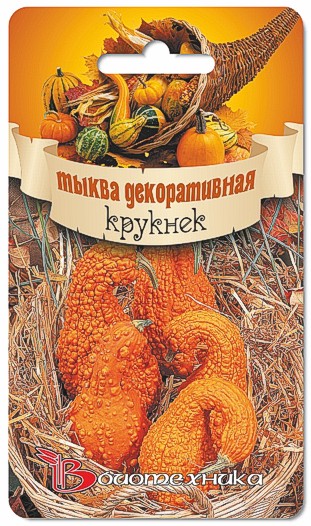 Семена тыквы "Крукнек" (Kruknek) позволяют выращивать компактные кусты, достигающие в высоту до 50-70 см. Растение тепло и светолюбивое, хорошо растет на легких плодородных почвах. Первые плоды появляются через 35-40 дней после всходов и плодоносят до наступления холодов. Поверхность урожая бугристая, насыщенно-оранжевого окраса. Мякоть ярко-оранжевая, ароматная. Средняя масса доходит до 300-500 грамм. Оригинальная форма плодов позволяет использовать их для изготовления различных интересных поделок. Также тыква идеально подходит для приготовления различных блюд.