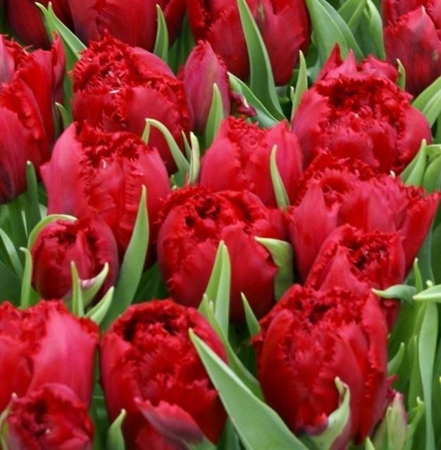 Луковицы тюльпана Лион Кинг (Lambada) помогут не только профессионалам, но и любителям декорировать свой участок. Это роскошный тюльпан имеет небольшой рост до 50 сантиметров. А бокал у него зацветает в мае ярким карминно-красным цветом. Имеет сходство с пионом из за большого количества лепестков (полный). А лепестки его украшены красивой и частой бахромой.