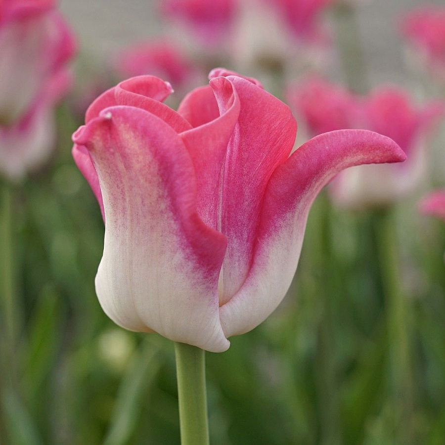 Тюльпаны - многолетние травянистые луковичные растения семейства лилейных. Они заслуженно пользуются широкой популярностью и распространены во всех странах с умеренным климатом. Тюльпаны являются наиболее красивоцветущими среди весенних цветов и к тому же относительно неприхотливы в культуре. Для тюльпанов данного класса характерны крупные бокаловидные цветки, довольно высокие цветоносы и хороший коэффициент размножения. Окраска цветов у тюльпанов этого класса самая разнообразная: от чисто-белой до темно-фиолетовой. Цветут Триумф-тюльпаны в конце апреля - начале мая, довольно продолжительное время и хорошо сохраняют форму бокала. Применяют тюльпаны данного класса довольно широко: на срезку, для оформления садов и парков, для выгонки в средние и поздние сроки. В настоящее время это самый многочисленный класс тюльпанов.
