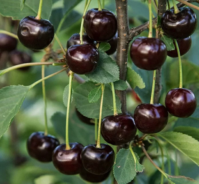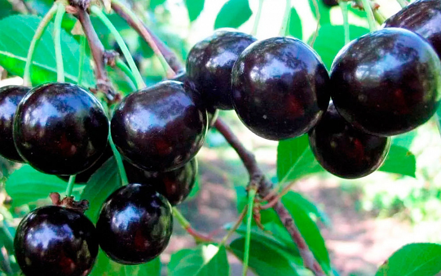 Саженцы вишни Шоколадница представляют собой невысокие деревца, которые впоследствии вырастут максимум до 2,5 м. Их крона густая. Ягоды отличаются своей широкой круглой формой, вес одной штуки равняется 3,5 – 4 г. При этом косточка плода занимает лишь десятую часть установленного веса. Спелые плоды становятся темно-бордовыми, цвет может переходить в иссиня-черный при дальнейшем дозревании. Данный сорт нетребователен в уходе и славится своими обильными урожаями. Предназначается вишня Шоколадница для высадки в центральной части России. Деревья лучше развиваются при теплой погоде на питательных слабокислых или нейтральных почвах.