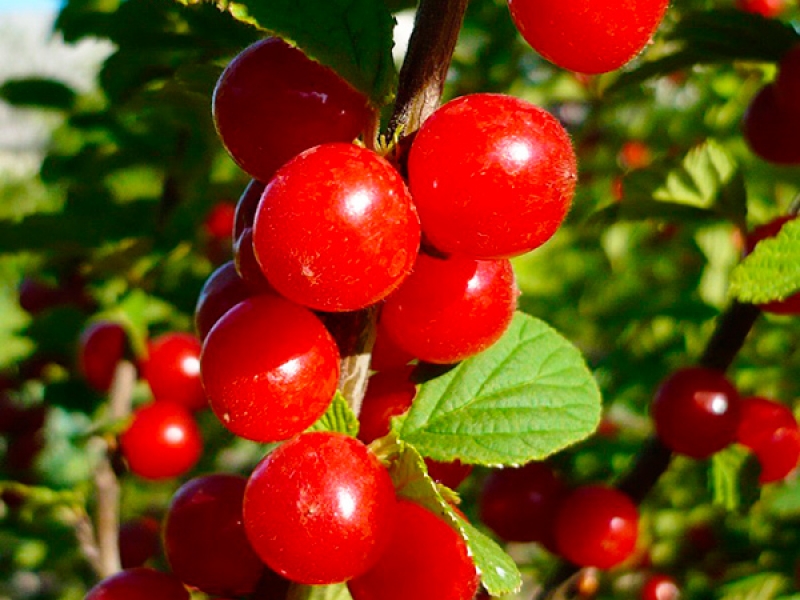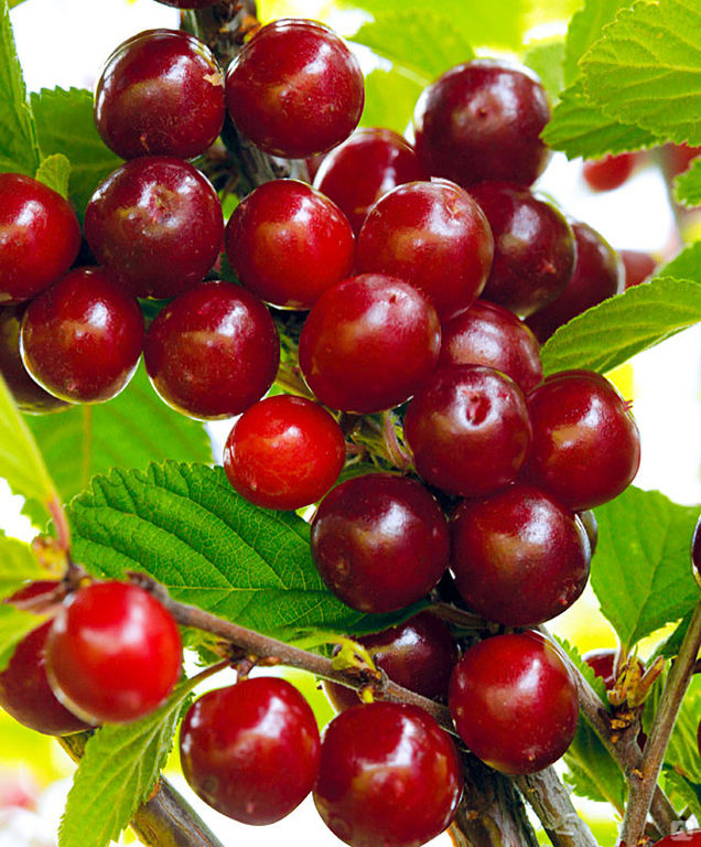 Саженцы вишни войлочная Царевна растут кустовым (не выше 2,5 метра) раскидистым растением. Декоративны и листва с четким резным контуром, и цветы, которые в период цветения покрывают ветвь полностью. Декоративность куста сочетается с высокой урожайностью, привитые крупномеры плодоносят уже на второй год. С 19 июля массово зреют крупные (массой 3-4 г) овальные кисловатые ягоды с ворсинистой кожицей. Спелые вишни не осыпаются. Особенности ухода: