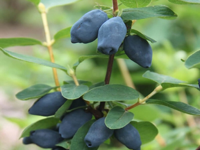 Саженцы жимолости съедобной Фиалка превращаются в невысокий, слабораскидистый кустарник. Крона плавная, круглая. Крупномер приносит полезные и вкусные плоды. Ягоды достаточно большие, овальные, лилово-синие, их вес – около одного грамма. Биохимический состав плодов жимолости уникален: